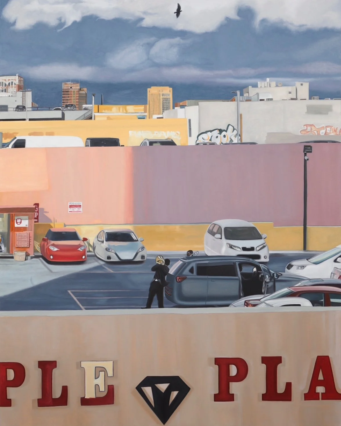 Color, once secondary in his practice, has become another key player. Early on, Deener focused more on realism than on chromatic choices, but conversations with his former dealer helped him reframe his approach. He began to consider the emotional and symbolic weight of his palette, drawing from fashion and design to create strategic, evocative color combinations. “Then, my palette started feeling better as my usage of color strengthened,” he says. His vibrant canvases—infused with electric pinks, deep blues, and mint greens—radiate an undeniable energy, amplifying the sense of movement and expression within each piece.